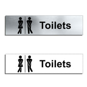 Enhance the look of your doors with our brushed aluminium Humorous Unisex Toilet Door Signs. Brushed silver aluminum door signs are known for their contemporary appeal, giving a high-end look that is both sleek as well as being practical. The distinctive brushed aluminium texture creates a modern aesthetic that is perfect for businesses or organisations aiming to convey a sense of style and professionalism. The textured metallic finish adds a touch of luxury, making brushed aluminum door signs a popular choice for any location. Manufactured by us here in the UK using a high quality 3mm brushed silver aluminium composite sheet each door sign is suitable for either internal or external use. Our door signs are precision cut to size and shape using one of our flat bed CNC routers and is then digitally printed directly to the surface using the very latest UV printing technology. This door sign is also available in a 3mm bright white aluminium composite finish. These door signs are supplied with self adhesive pads to allow for easy installation. We also offer a range of stylish screw fixings that are designed to compliment the finish of each sign. Due to the large selection of different sign designs to avoid drill holes in the actual image or text area we do not supply these signs with any pre-drilled holes.