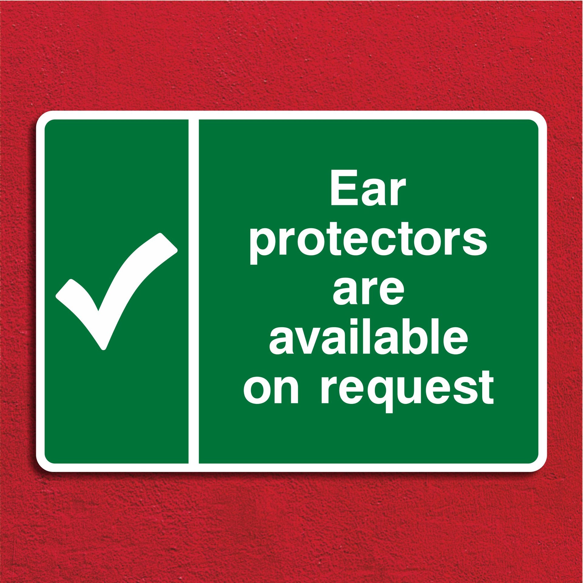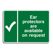 Ear Protectors Are Available on Request Signs serve to inform individuals, typically in workplaces or environments with high noise levels, that hearing protection is available if needed, even if it is not mandatory in that specific area. These signs are most commonly found in manufacturing plants, construction sites, workshops, or any location where intermittent or variable noise levels may pose a risk to hearing. All our safety signs are compliant with BS EN ISO 7010 where applicable.