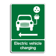 Electric Vehicle Charging Point Signs with a Left Pointing Arrow are used to direct drivers toward the location of electric vehicle (EV) charging stations, specifically indicating that the charging point is to the left. They guide EV drivers to nearby charging stations, helping them easily locate the facility, especially in large or complex parking areas. By improving visibility and navigation, the signs promote the use of electric vehicles and make charging more convenient. All our safety signs are compliant with BS EN ISO 7010 where applicable.