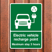 Electric Vehicle Recharge Point Maximum Stay 3 Hours Sign