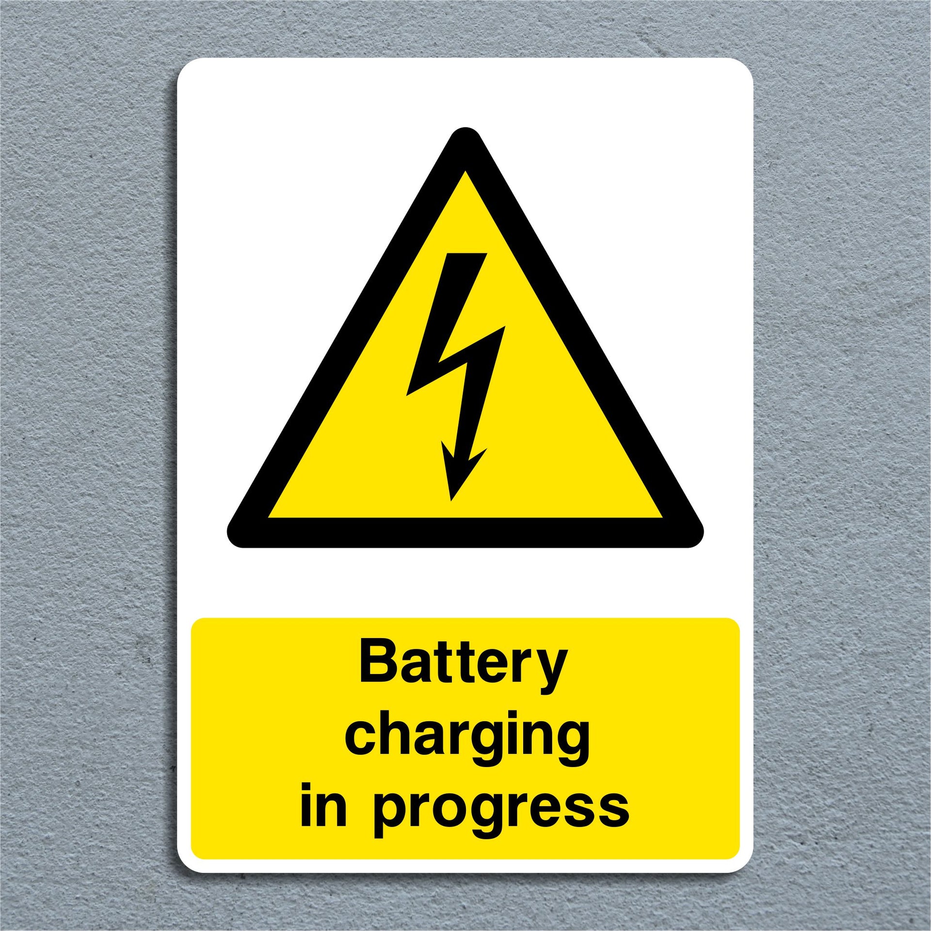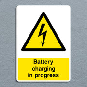 Battery Charging in Progress Signs are used to warn people that batteries are currently being charged in the area, which can involve electrical, chemical, and fire hazards. These signs are commonly found in warehouses, factories, workshops, and vehicle maintenance areas where large batteries (like those for forklifts, electric vehicles, or backup power systems) are regularly charged. All our safety signs are compliant with BS EN ISO 7010 where applicable.