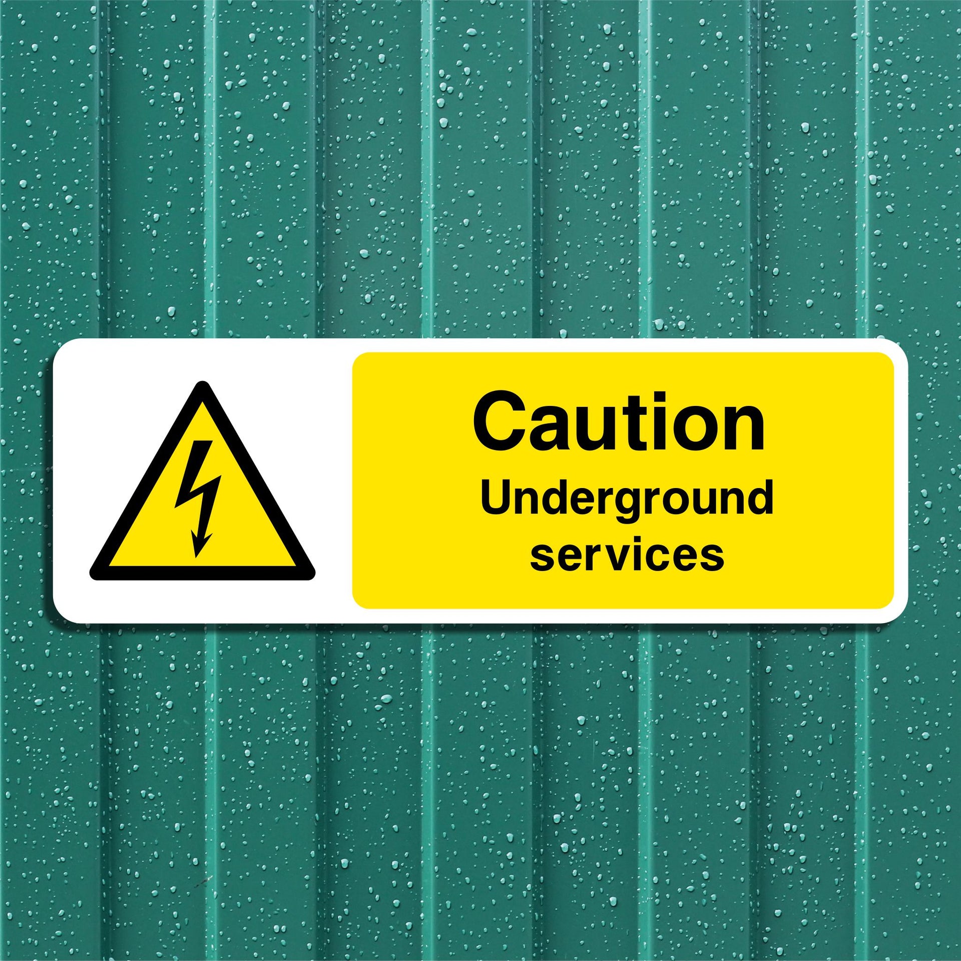 Caution Underground Services Signs are used to warn people that utility services such as cables, pipes, or ducts are buried underground in the area, helping to prevent accidental damage, injury, or service disruption. All our safety signs are compliant with BS EN ISO 7010 where applicable.