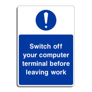 Switch Off Your Computer Terminal Before Leaving Work Sign