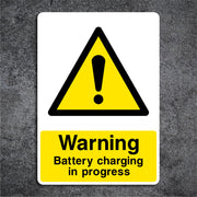 Warning Battery Charging in Progress Signs are used to alert people that batteries are actively being charged in the area, which may involve electrical, chemical, or fire-related hazards. These signs are commonly found in industrial settings, warehouses, garages, and workshops where large or powerful batteries (such as for forklifts, electric vehicles, or backup systems) are charged. All our safety signs are compliant with BS EN ISO 7010 where applicable.