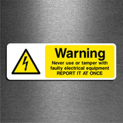 Warning Never Use Or Tamper With Faulty Electrical Equipment Report It At Once Sign