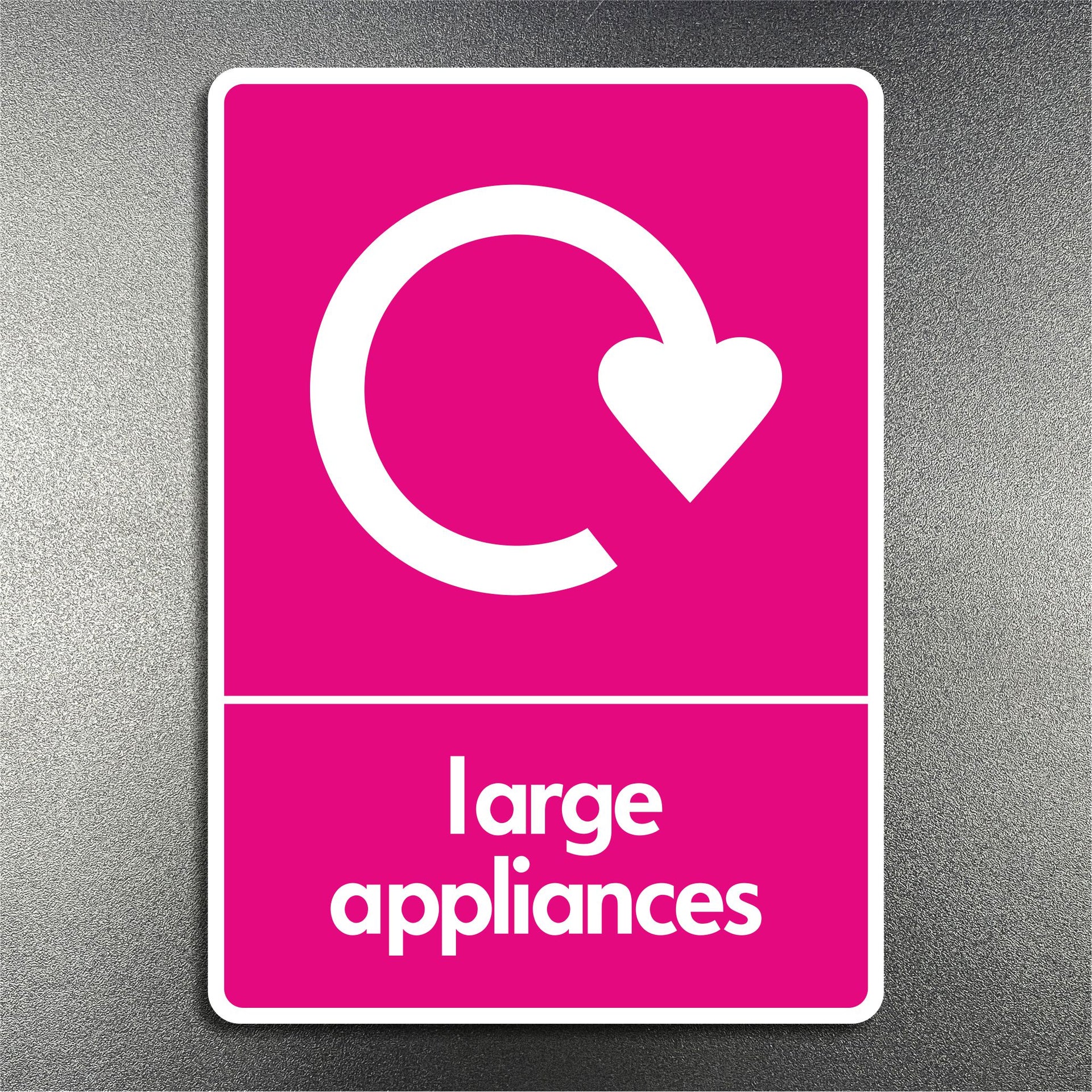 Large Appliances Recycling Signs are used to clearly designate areas specifically for the collection and recycling of bulky appliances such as refrigerators, washing machines, ovens, and dishwashers. These signs promote environmentally responsible waste management by encouraging proper segregation and handling of appliances that may contain hazardous materials like refrigerants, oils, and electronic components. Use this sign to support the Waste and Resources Action Programme (Wrap). All our safety signs are compliant with BS EN ISO 7010 where applicable.