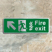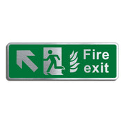 Brushed Silver Fire Exit Sign with Forward Left Arrow