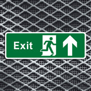 Emergency Exit Signs with a Straight Ahead Arrow are to provide clear and specific directional guidance, indicating that an exit is located in the up direction relative to the viewer’s current position. These signs are commonly used in buildings, public facilities, event venues, and other structures to guide occupants toward the nearest safe exit, especially in both everyday navigation and emergency situations. All our safety signs are compliant with BS EN ISO 7010 where applicable.