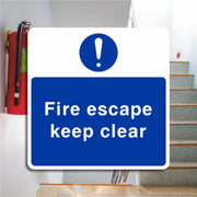 Fire Escape Keep Clear Signs are placed near fire exits or escape routes to ensure that these areas remain unobstructed and accessible in the event of an emergency. These signs are vital for compliance with fire safety regulations and are designed to promote the safety and well-being of occupants by ensuring that escape routes are always clear, allowing for a fast and safe evacuation during a fire or other emergencies. All our safety signs are compliant with BS EN ISO 7010 where applicable.