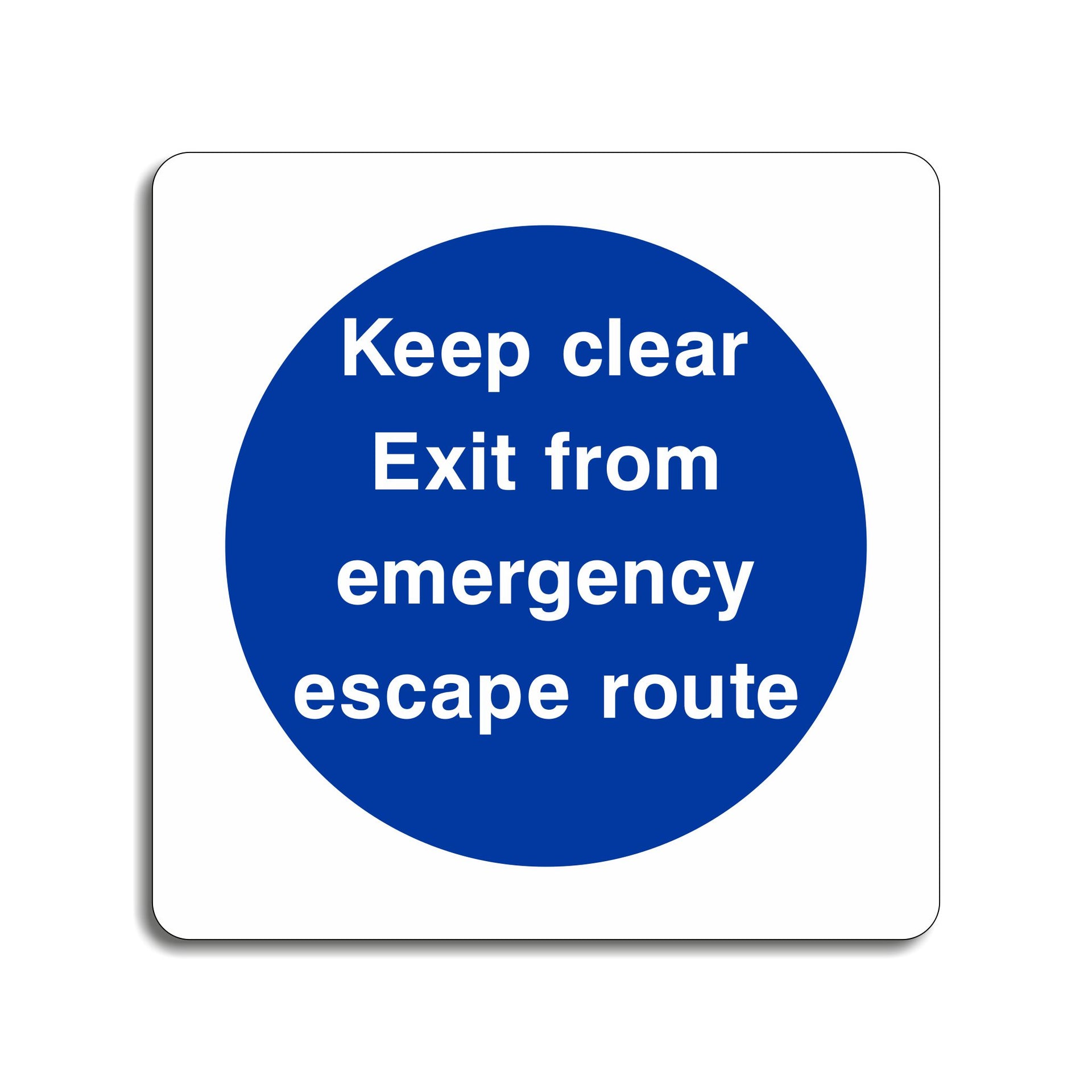 Keep Clear Exit from Emergency Escape Route Signs are important safety indicators designed to ensure that exit paths and emergency escape routes remain free from obstructions. These signs play a vital role in guiding people to safety during emergencies, such as fires, earthquakes, or any situation that requires an immediate evacuation. All our safety signs are compliant with BS EN ISO 7010 where applicable.