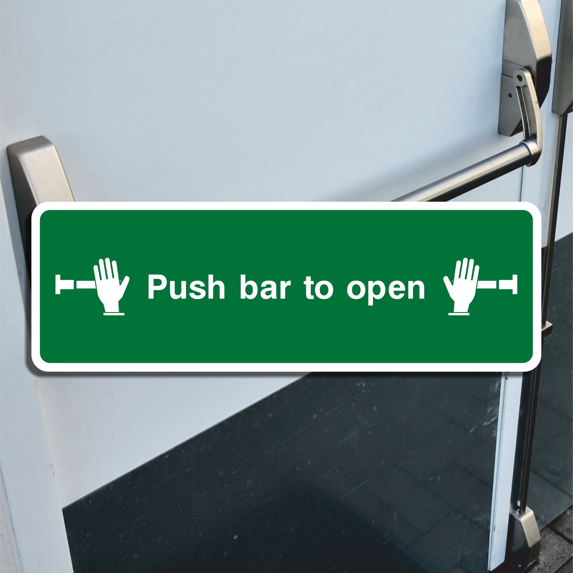 Push Bar to Open Signs are to provide clear and direct instructions for operating emergency or exit doors fitted with a push bar. Push Bar to Open Signs are vital for ensuring that people can safely and quickly exit a building during an emergency, especially in public or commercial spaces. All our safety signs are compliant with BS EN ISO 7010 where applicable.
