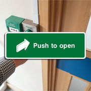 Push to Open Signs are to clearly inform people that a door or entryway operates by being pushed rather than pulled, slid, or turned. Push to Open Signs are simple yet crucial for guiding proper door use, enhancing accessibility, and ensuring efficient movement, especially in public, commercial, or emergency settings. All our safety signs are compliant with BS EN ISO 7010 where applicable.