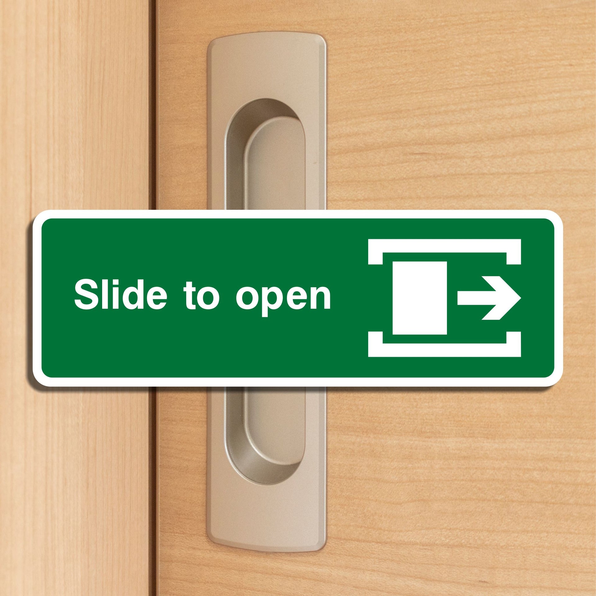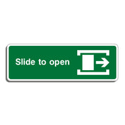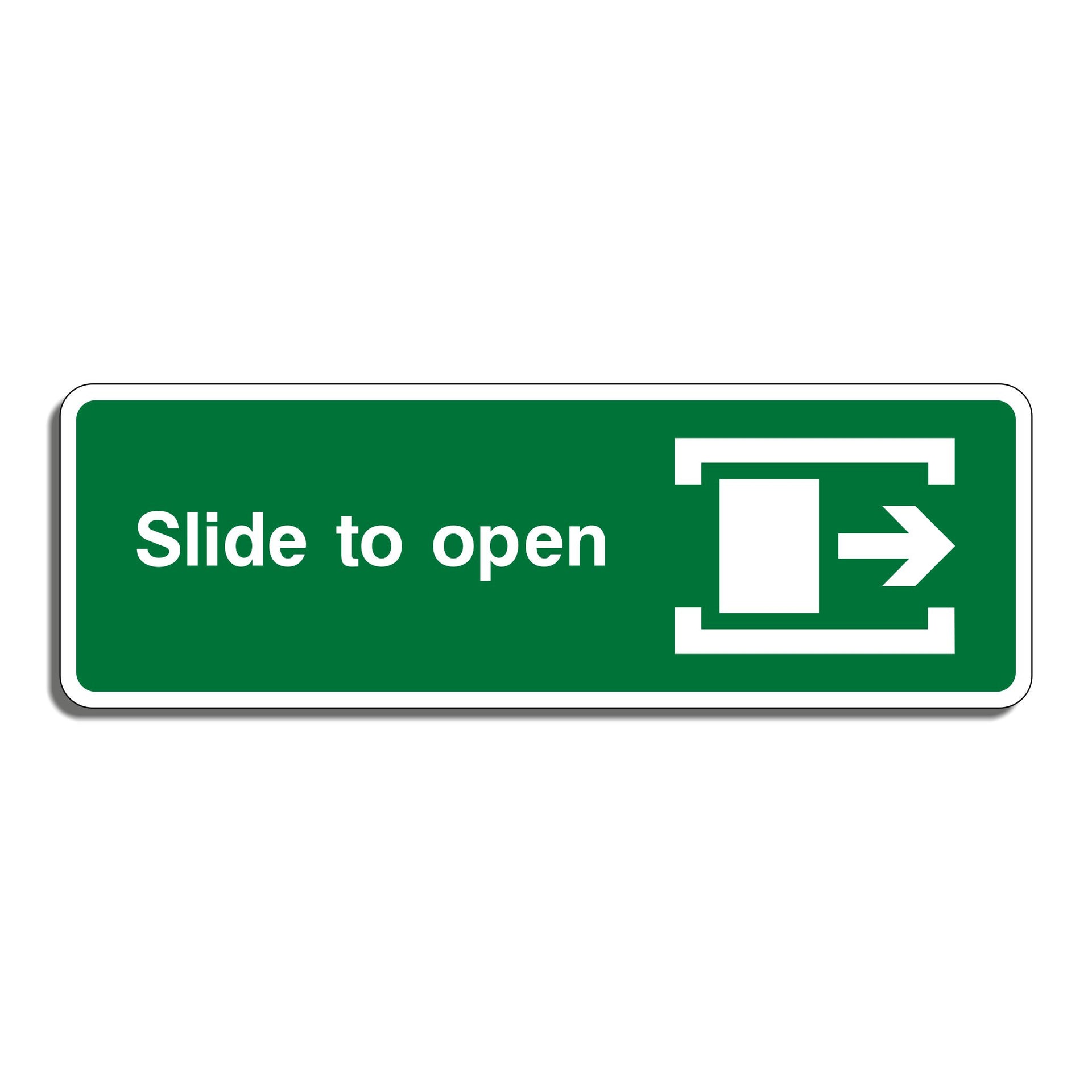 Slide to Open Signs are to provide clear, simple instructions on how to operate a door, window, or panel that opens by sliding rather than pulling or pushing. Slide to Open Signs help prevent confusion, reduce misuse, and promote ease of access, especially in public, commercial, or emergency environments. All our safety signs are compliant with BS EN ISO 7010 where applicable.