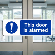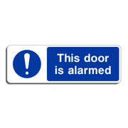 This Door Is Alarmed Signs are safety indicators used to inform people that a particular door or entry point is equipped with an alarm system. The primary purpose of these signs is to deter unauthorized access, notify occupants or intruders that the door is protected by an alarm, and warn individuals that tampering or breaching the door may trigger an audible or silent alarm. These signs are commonly placed on doors or gates that have security systems designed to alert authorities or security personnel of unauthorized access or attempts to bypass the door’s security. All our safety signs are compliant with BS EN ISO 7010 where applicable.
