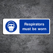 Respirators Must Be Worn Signs are mandatory safety signs that instruct individuals to wear a respirator or respiratory protection in designated areas where there is a risk of breathing in hazardous substances. These signs are essential in workplaces where the air may be contaminated with dust, fumes, gases, vapors, or biological agents. All our safety signs are compliant with BS EN ISO 7010 where applicable.