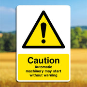 Caution Automatic Machinery May Start without Warning Sign