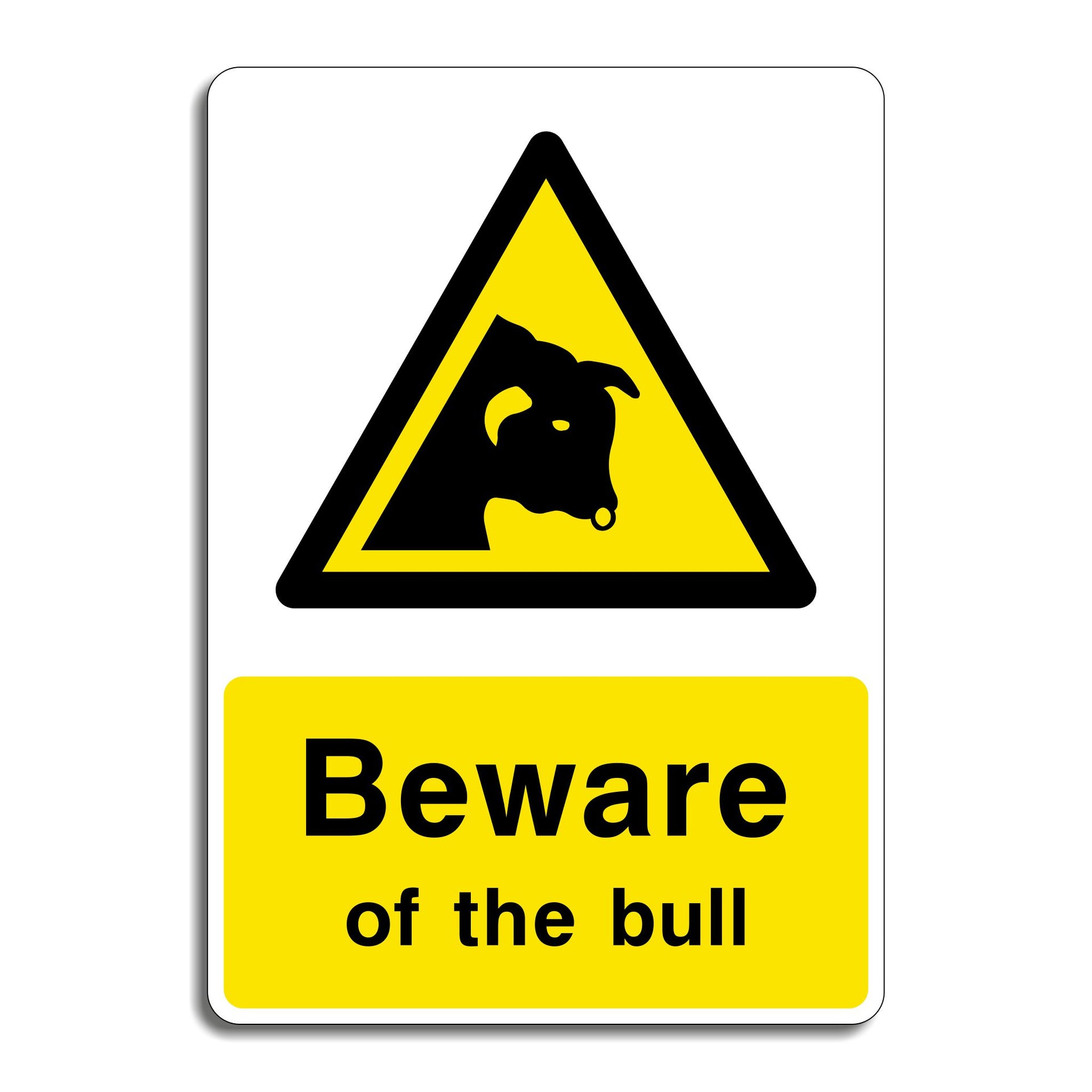 Beware of the Bull Hazard Warning Sign. Bulls known for their aggressive behavior especially when someone enters their field. Display this sign to clearly show anybody that there is a bull in the field and to highlight the potential hazard. All our safety signs are compliant with BS EN ISO 7010 where applicable.