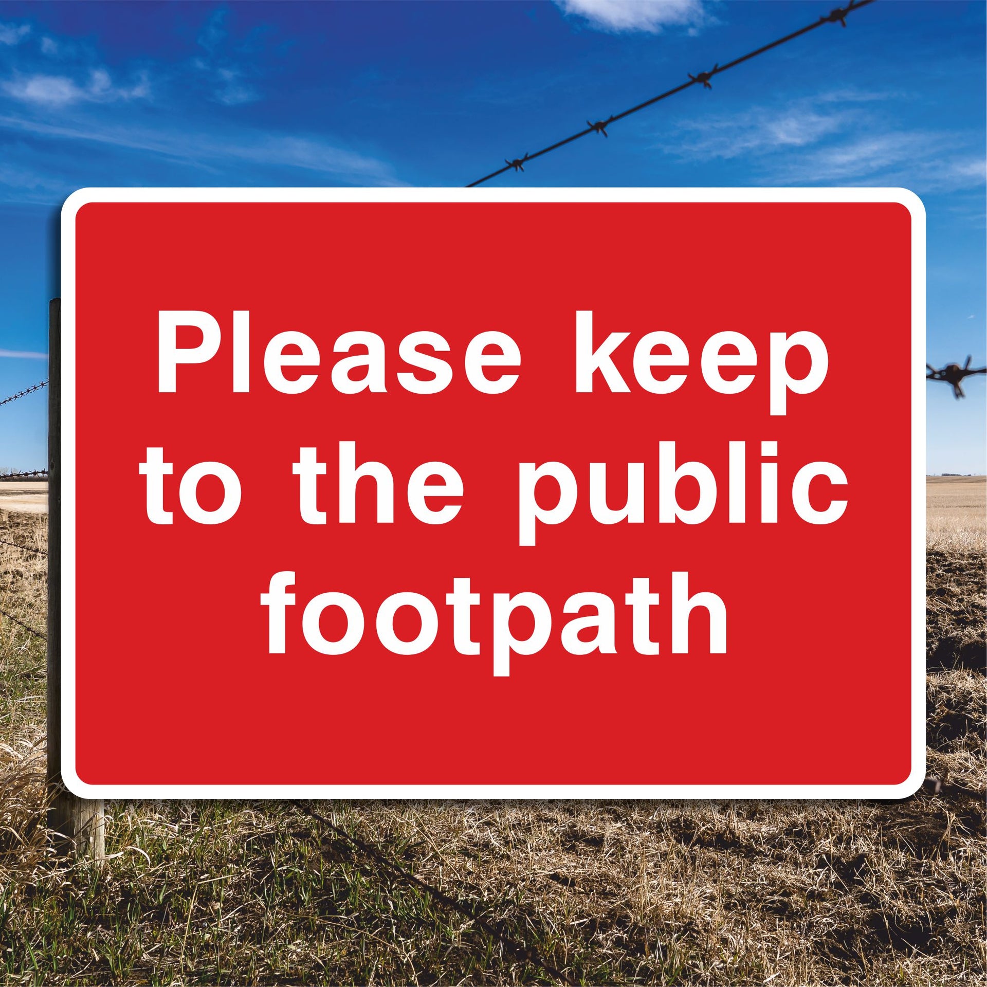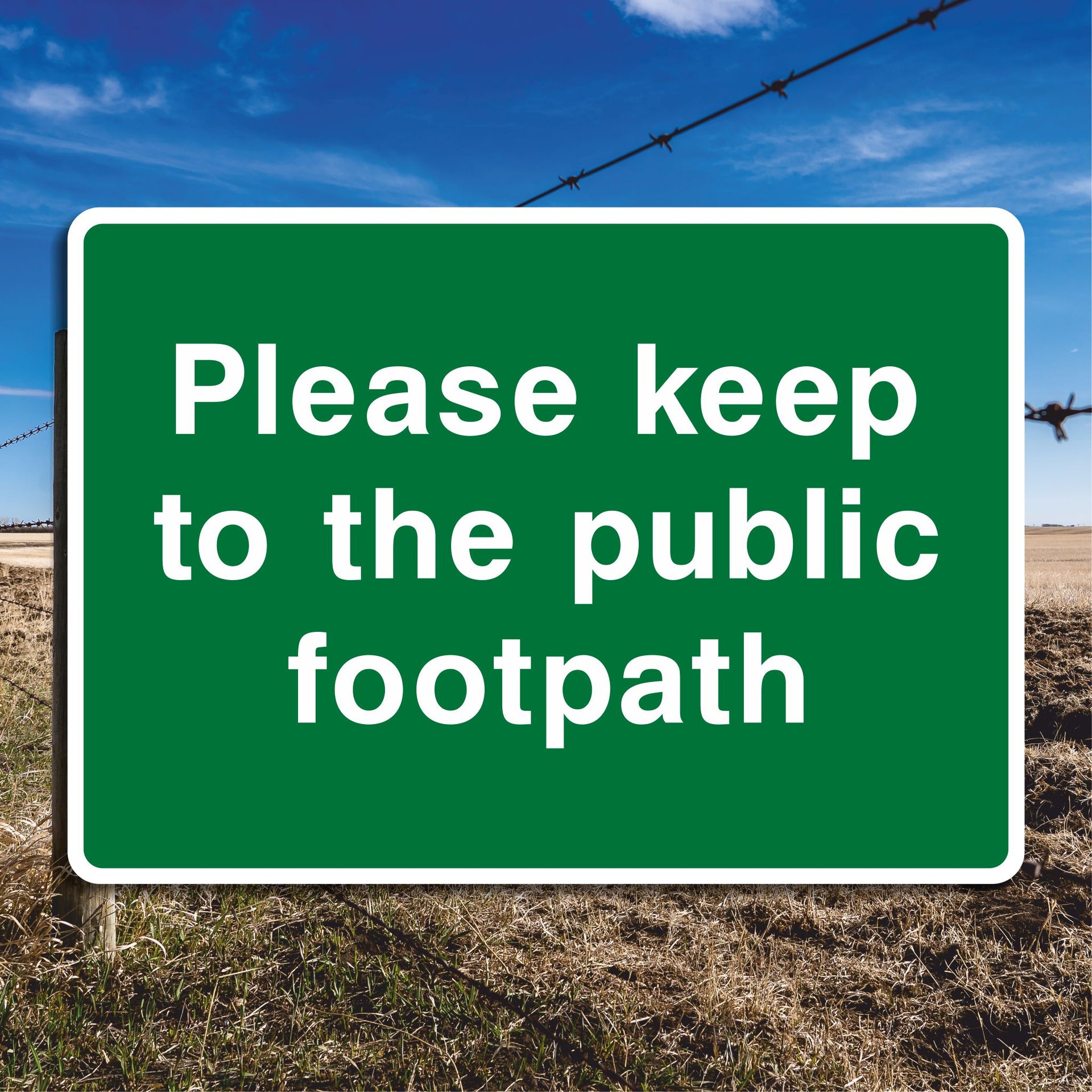 Please Keep to the Public Footpath Signs are to politely remind walkers to stay on the designated path, helping to protect the surrounding environment, respect property rights, and ensure safety. Public footpaths often cross through private farmland or estates. Please keep to the public footpath signs help prevent walkers from straying onto private areas where access is not permitted. All our safety signs are compliant with BS EN ISO 7010 where applicable.
