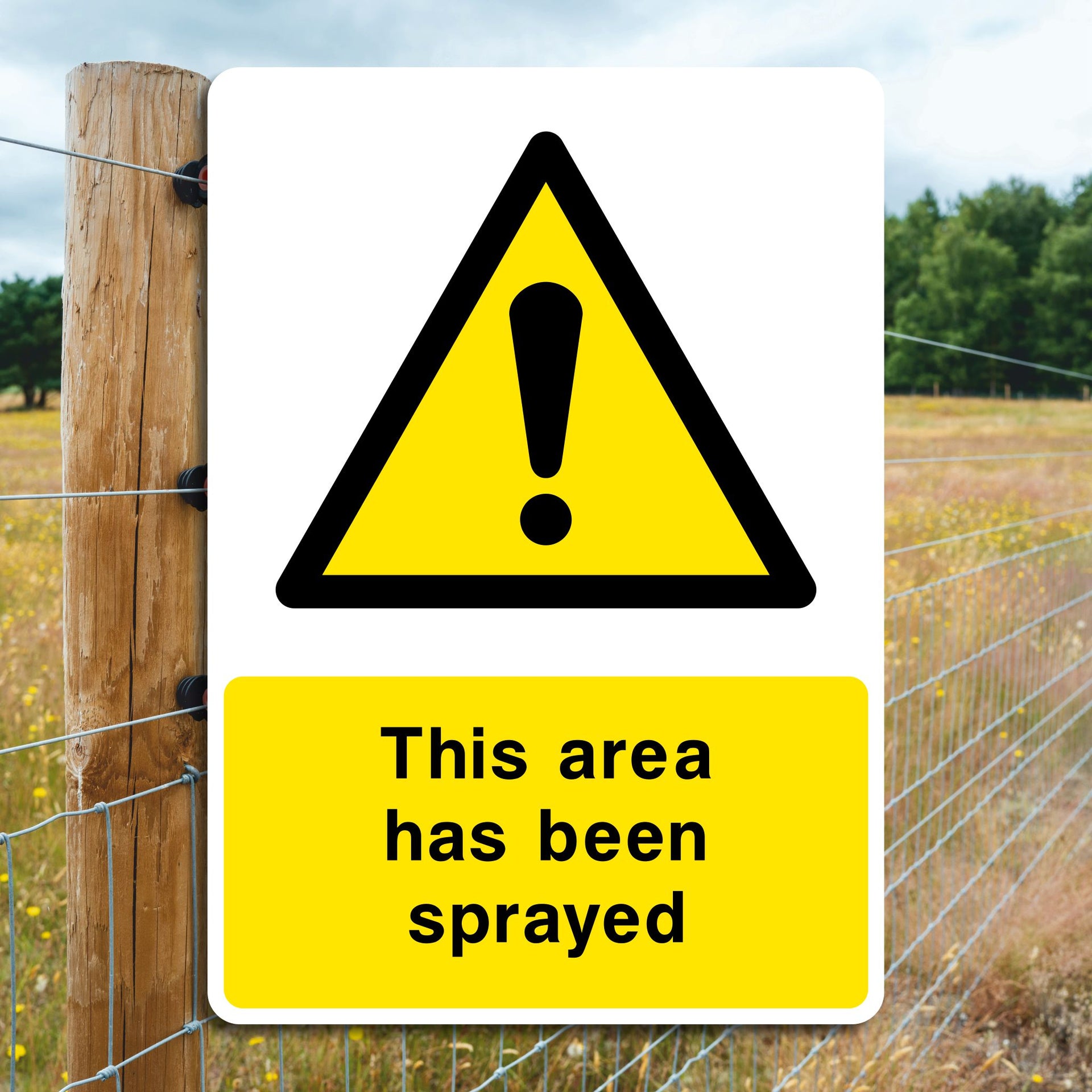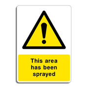 This Area Has Been Sprayed signs warn and inform people that a specific area has recently been treated with chemicals, such as pesticides, herbicides, or insecticides. These signs are essential for public health, safety, and legal compliance. This area has been sprayed signs alert people that hazardous substances may be present on surfaces, plants, or in the air, which could be harmful if touched, inhaled, or ingested. The sign helps prevent people—especially children, pet owners, or anyone unaware from entering the area and being exposed to chemicals. All our safety signs are compliant with BS EN ISO 7010 where applicable.