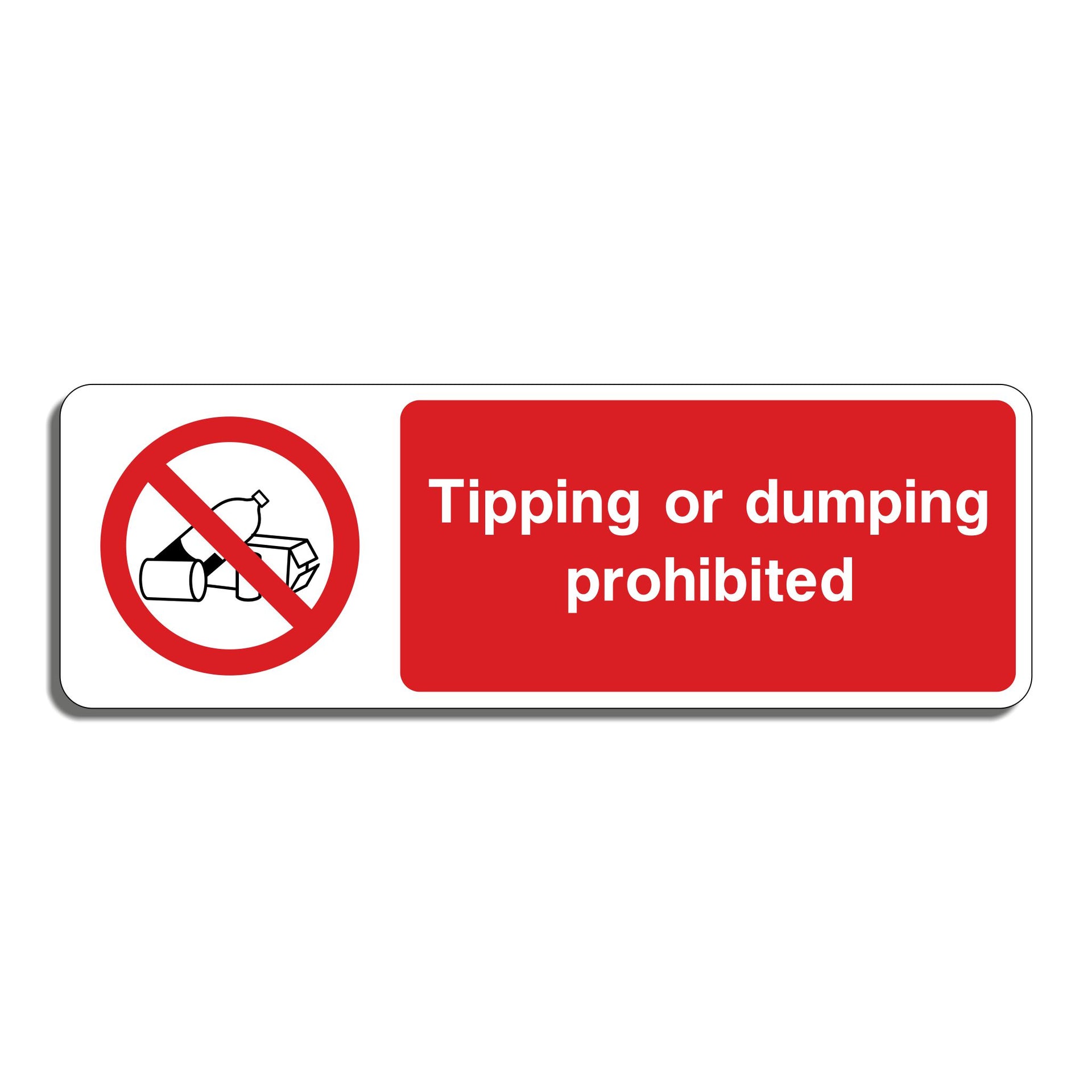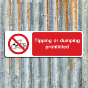 Tipping or Dumping Prohibited Signs serve to strictly forbid the disposal or abandonment of waste, rubbish, or unwanted materials in a specific area. These signs clearly communicate that dumping garbage or other materials is not allowed, helping to reduce illegal dumping incidents. By prohibiting tipping, the signs help prevent pollution of land, waterways, and ecosystems. All our safety signs are compliant with BS EN ISO 7010 where applicable.