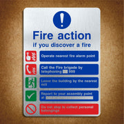 Brushed Aluminium Fire Action If You Discover a Fire Multimessage Sign