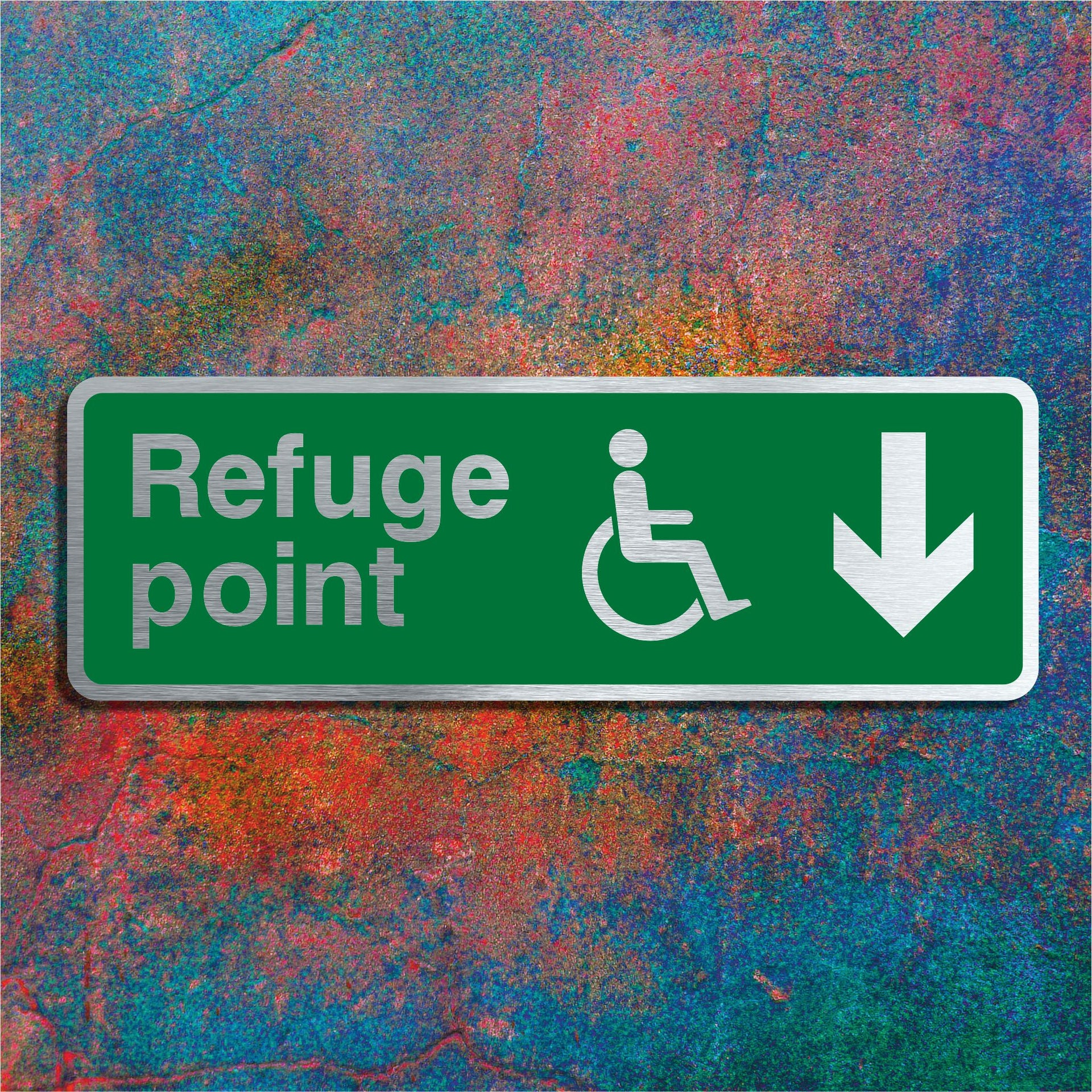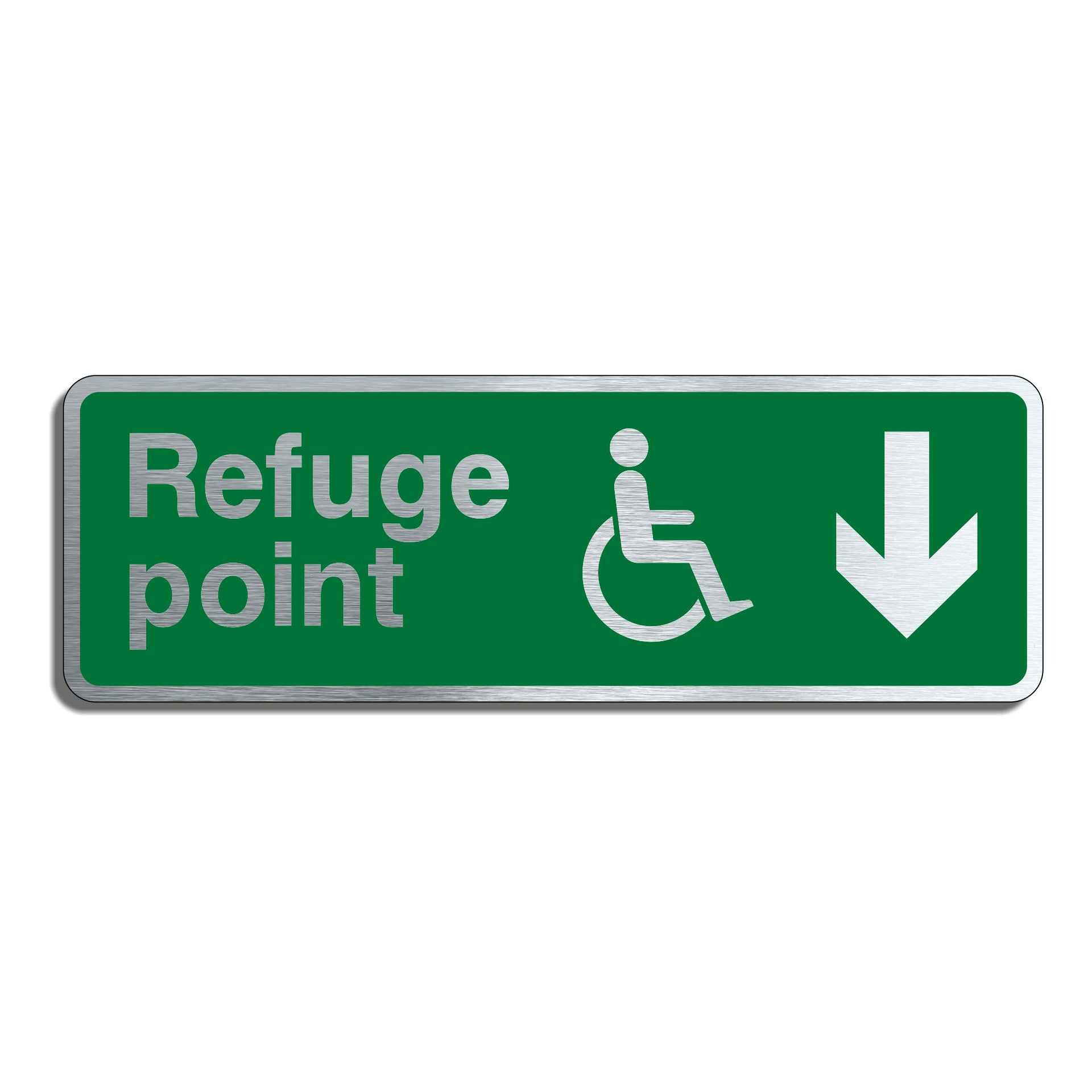 Brushed Aluminium Disabled Refuge Point Sign with Down Arrow