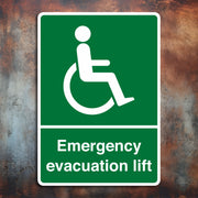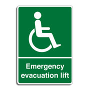 Disabled Emergency Evacuation Lift Signs are to indicate the presence of a lift specifically designed to be used during emergencies to help evacuate individuals with disabilities. These lifts are equipped to safely transport people who may have difficulty using stairs or other evacuation methods in the event of an emergency, such as a fire or building evacuation. Disabled Emergency Evacuation Lift Signs help identify the location and availability of the lift for emergency use. All our safety signs are compliant with BS EN ISO 7010 where applicable.