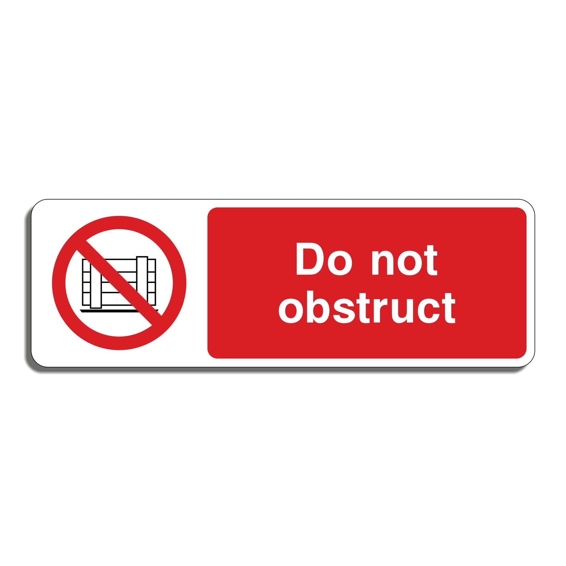 Do Not Obstruct Signs are used to instruct people not to block or hinder access to certain areas, pathways, entrances, exits, or equipment. Keeping areas clear allows for safe passage for people, vehicles, or emergency responders. Unobstructed access to equipment, loading zones, or entrances ensures smooth functioning of work processes or services. All our safety signs are compliant with BS EN ISO 7010 where applicable.