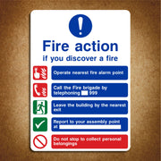 Fire Action If You Discover a Fire Multimessage Signs are a critical fire safety tool designed to provide immediate, clear, and standardized instructions for anyone who discovers a fire. Its purpose is to help individuals respond quickly and correctly to reduce risk, alert others, and ensure a safe evacuation. All our safety signs are compliant with BS EN ISO 7010 where applicable.