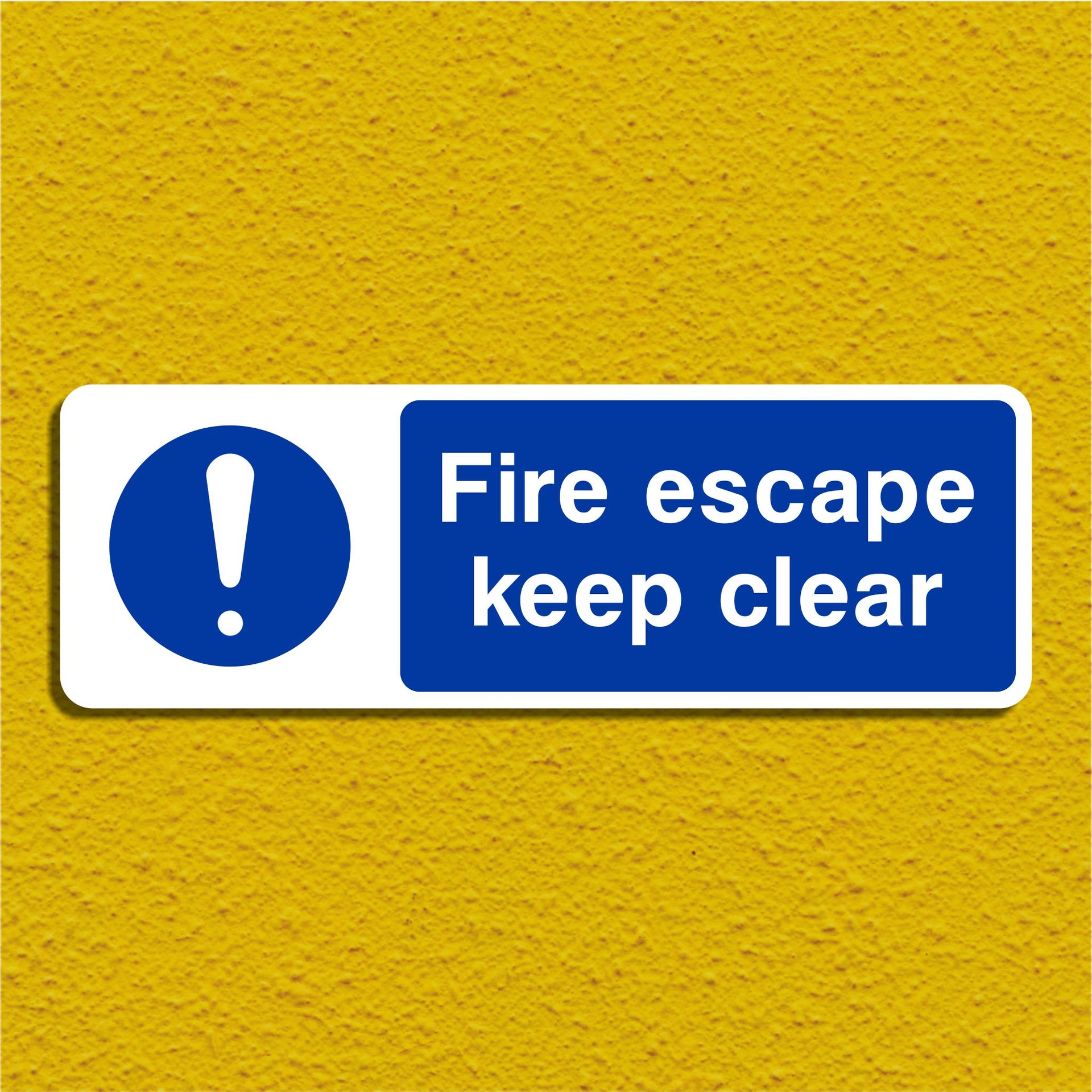 Fire Escape Keep Clear Signs are used to indicate the importance of keeping fire escape routes unobstructed and accessible at all times. These signs are typically placed near fire escape exits, doors, or corridors that are part of the building’s emergency evacuation routes. The purpose is to ensure that fire escape paths remain clear of any obstacles, enabling occupants to safely evacuate the building during a fire or other emergency situations. All our safety signs are compliant with BS EN ISO 7010 where applicable.