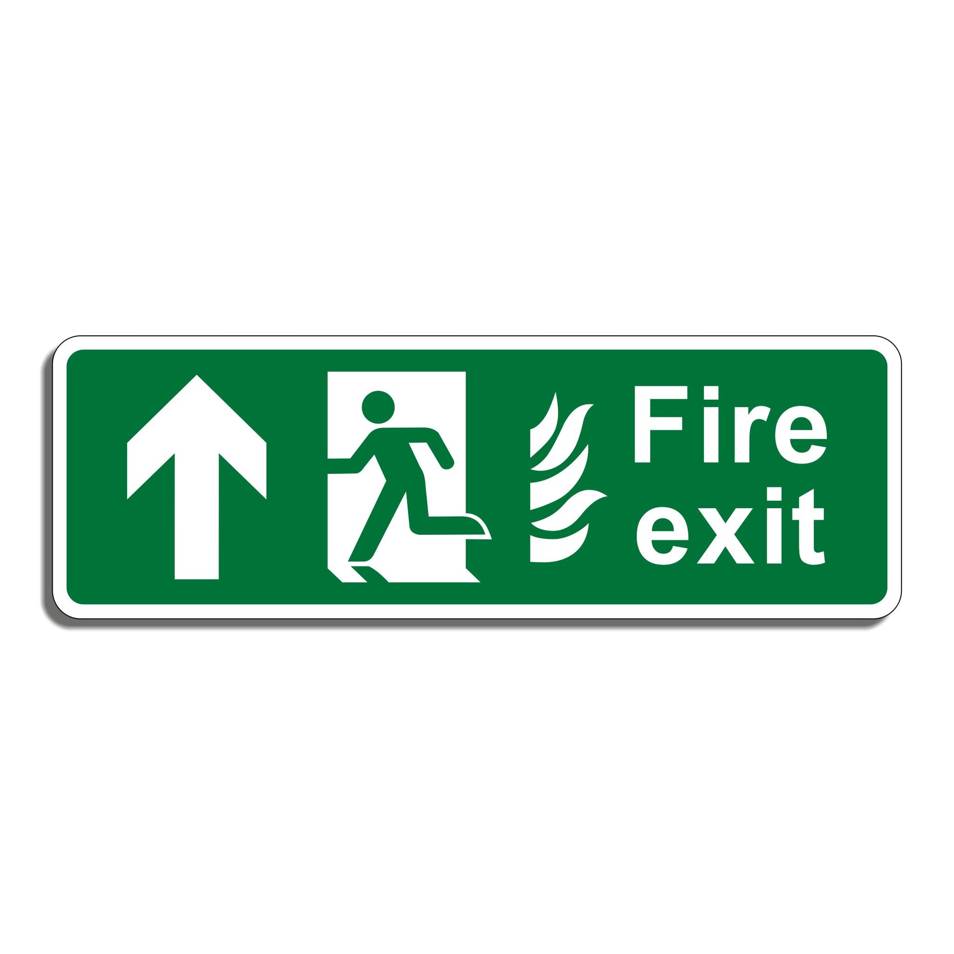 Fire Exit Sign with a Straight Ahead Arrow is to clearly indicate the direction toward a fire exit, with the added specification that the exit is located toward the top of the area or corridor. These signs play a critical role in guiding people to safety during an emergency, such as a fire, by directing them to the nearest exit in the most efficient way possible. All our safety signs are compliant with BS EN ISO 7010 where applicable.