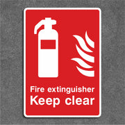 Fire Extinguisher Keep Clear Signs are fire safety signs that indicate the location of a fire extinguisher and instruct that the area in front of or around it must remain unobstructed at all times. In a fire, every second matters. Fire Extinguisher Keep Clear Signs make sure fire extinguishers can be quickly accessed and used without delay. All our safety signs are compliant with BS EN ISO 7010 where applicable.
