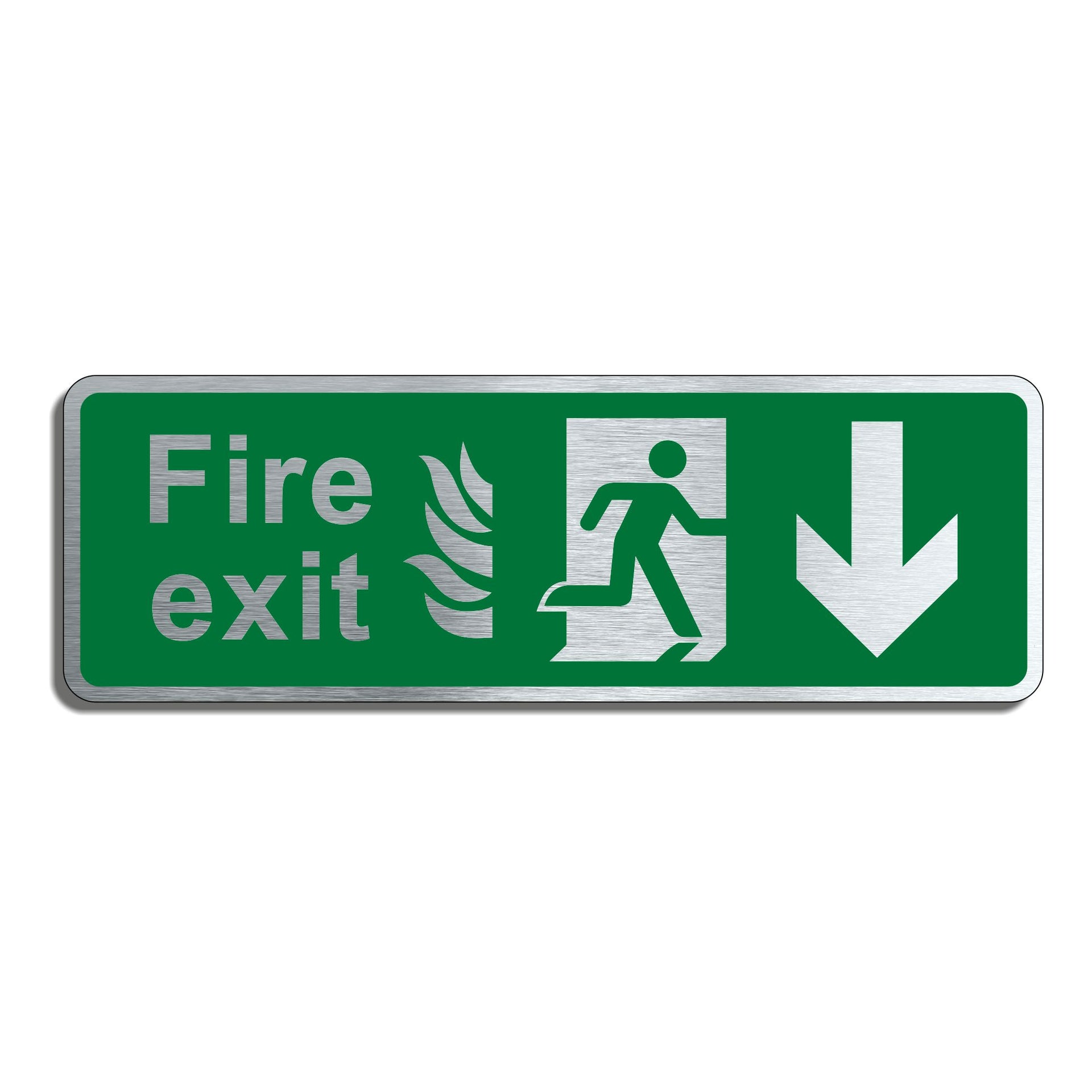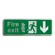 Brushed Silver Aluminium Fire Exit Sign with Down Arrow