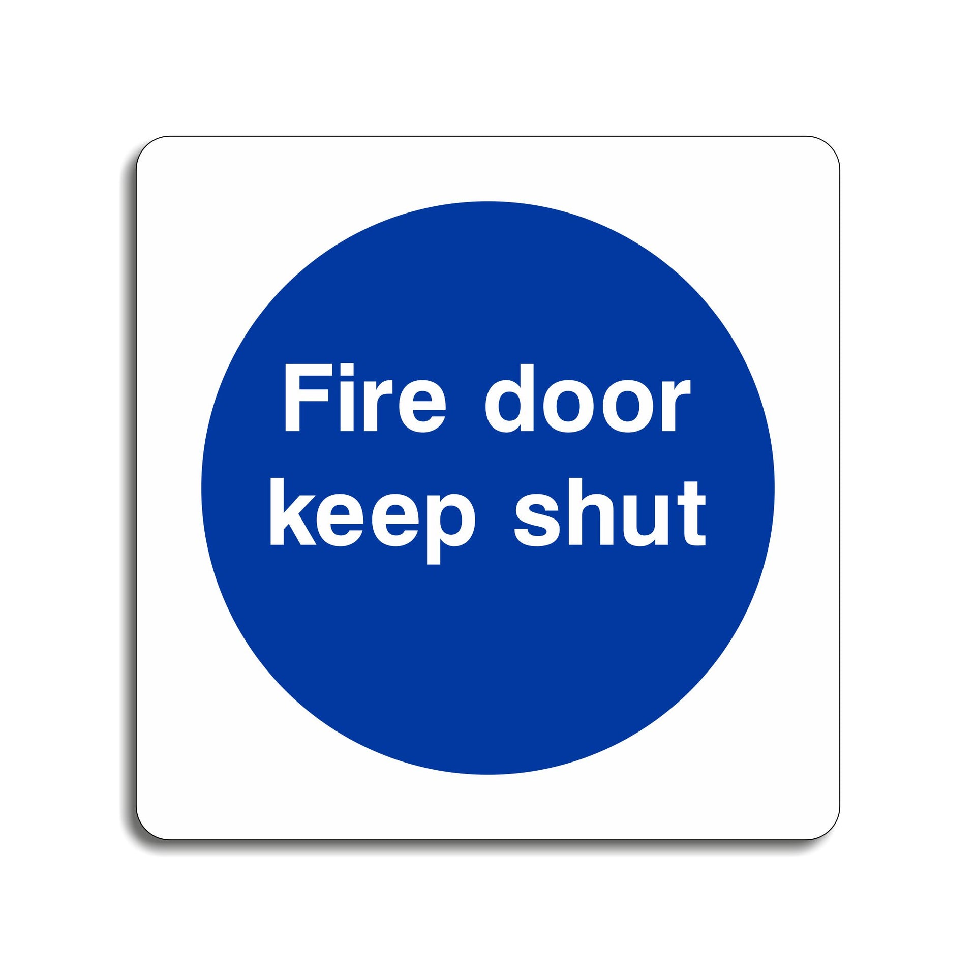 Fire Door Keep Shut Signs are safety signs that are placed on or near fire doors to ensure that they remain closed at all times. These signs serve to maintain the integrity of fire safety systems, protect building occupants, and comply with fire regulations. Fire doors are essential components of a fire protection system, and their role is to contain the spread of fire and smoke within a building, helping to protect lives and reduce property damage during emergencies. All our safety signs are compliant with BS EN ISO 7010 where applicable.