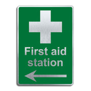 First Aid Station Signs with a Left Pointing Arrow are used to clearly identify the location of medical assistance within a facility, workplace, or public area, ensuring that people can quickly find help in the event of an injury or medical emergency. These signs improve response time by providing visible, standardized guidance to first aid supplies or trained personnel, even for individuals unfamiliar with the area. All our safety signs are compliant with BS EN ISO 7010 where applicable.