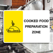 Cooked Food Preparation Zone Signs are essential in commercial kitchens, food production facilities, and catering environments to ensure food safety, cross-contamination prevention, and regulatory compliance. These signs clearly mark areas reserved for handling cooked or ready-to-eat foods, helping to prevent contact with raw ingredients that could introduce harmful bacteria. All our safety signs are compliant with BS EN ISO 7010 where applicable.