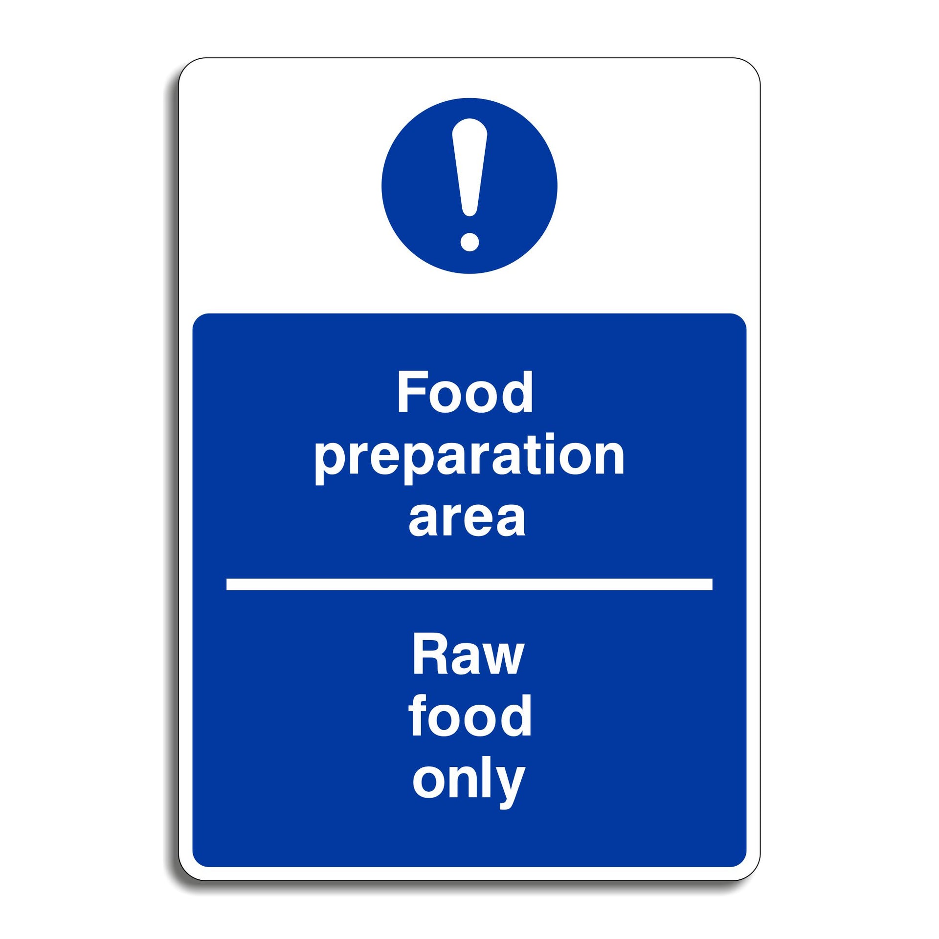 Raw foods can carry harmful bacteria like Salmonella, E. coli, and Listeria. This sign ensures raw ingredients are kept separate from cooked or ready-to-eat foods to avoid contamination. All our safety signs are compliant with BS EN ISO 7010 where applicable.