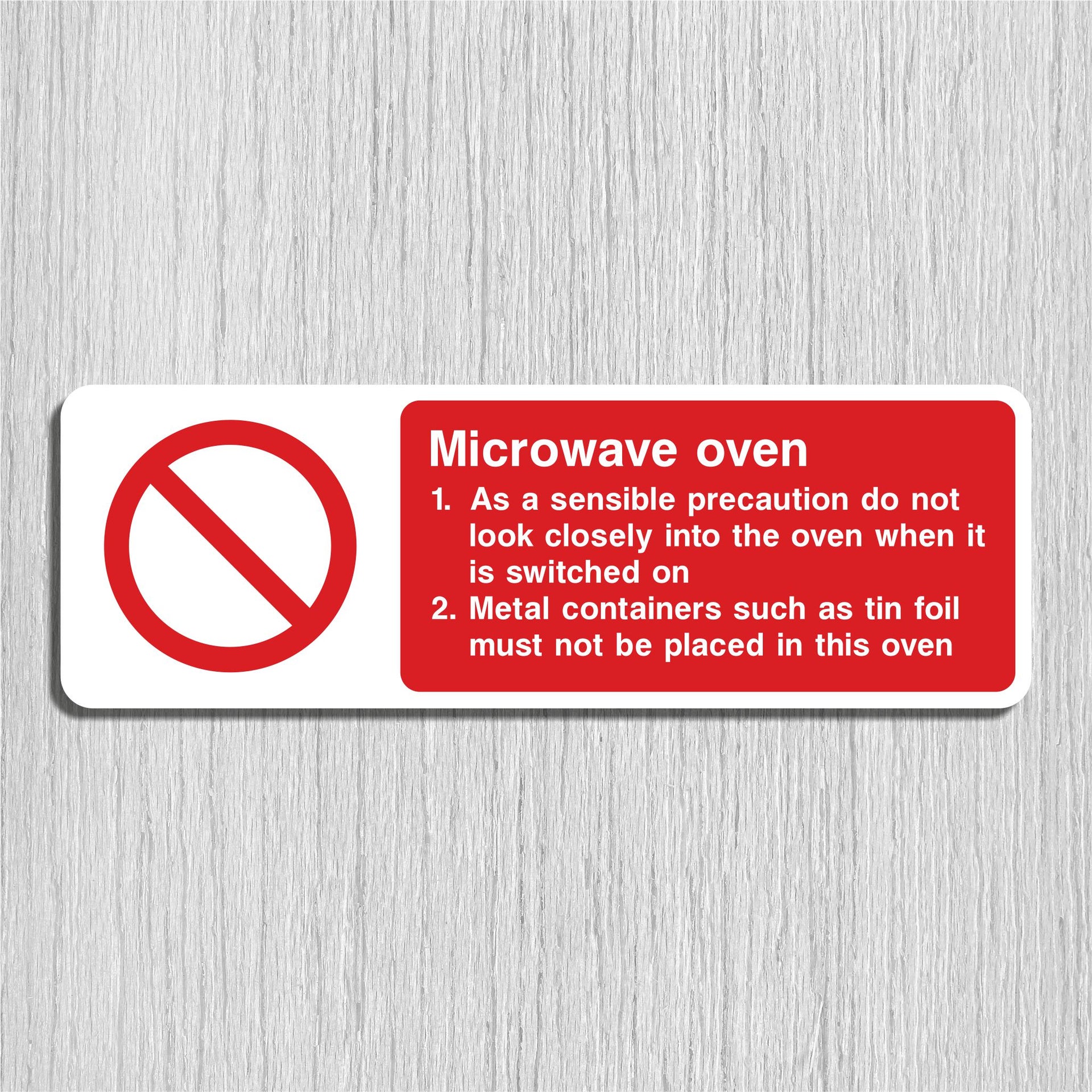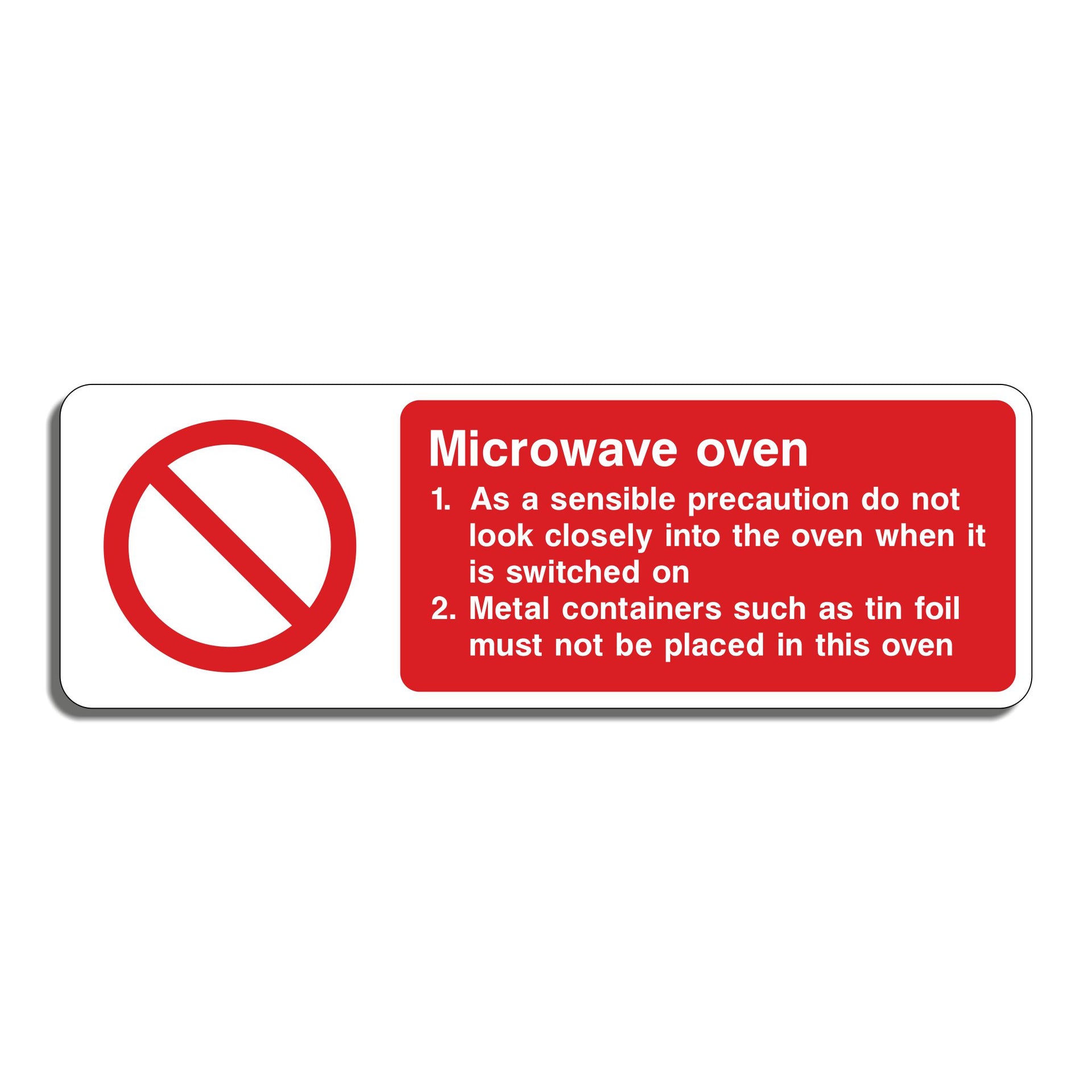 Microwave Signs are used in commercial kitchens, staff break rooms, hospitals, schools, and other shared spaces to ensure safe use, prevent equipment damage, and promote hygiene. Microwaves can pose risks such as burns, fire hazards, and steam explosions. Signs may warn users about using microwave-safe containers, not overheating liquids, or avoiding sealed containers (e.g., “Caution: Contents May Be Hot”). All our safety signs are compliant with BS EN ISO 7010 where applicable.