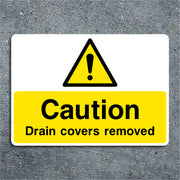 Caution Drain Covers Removed Sign