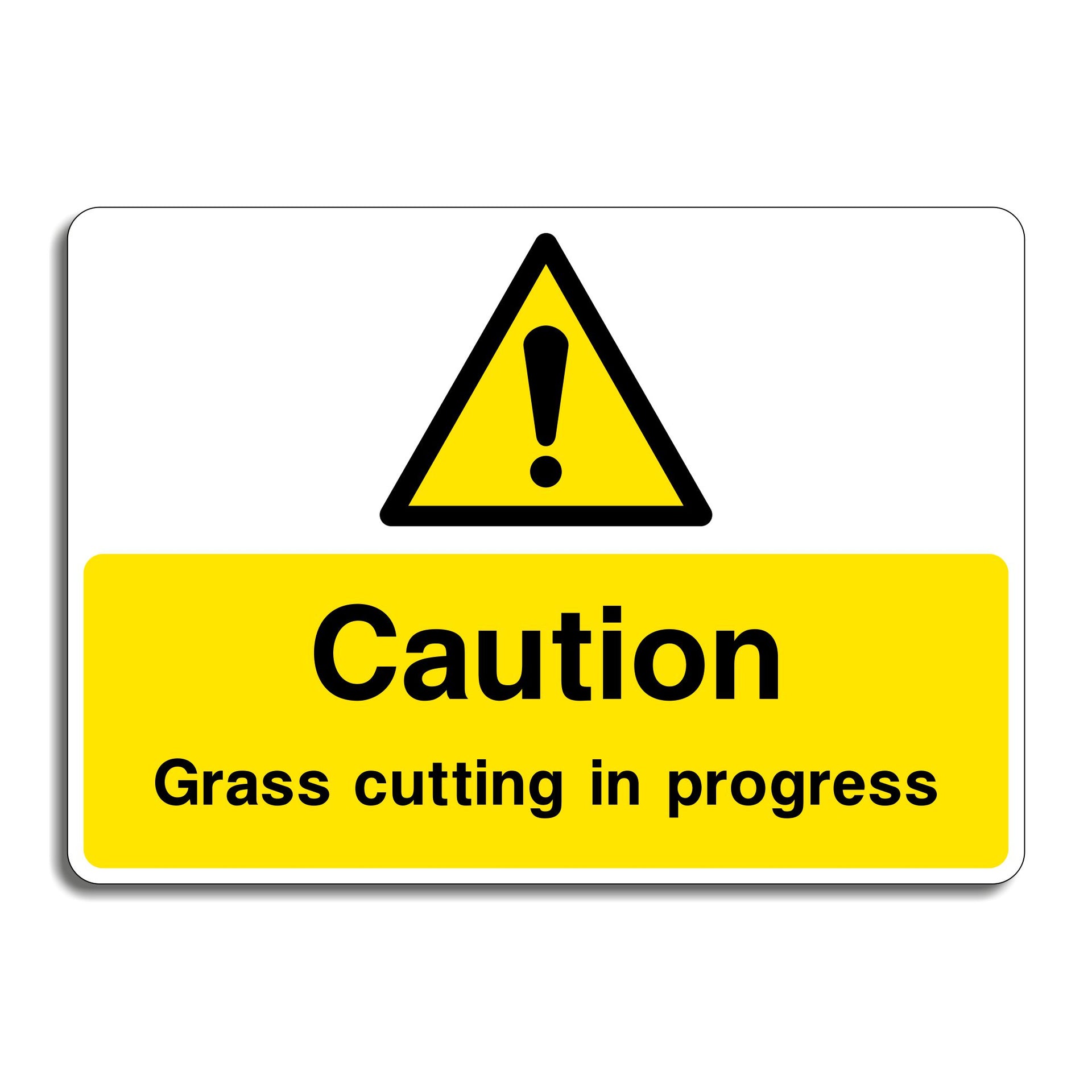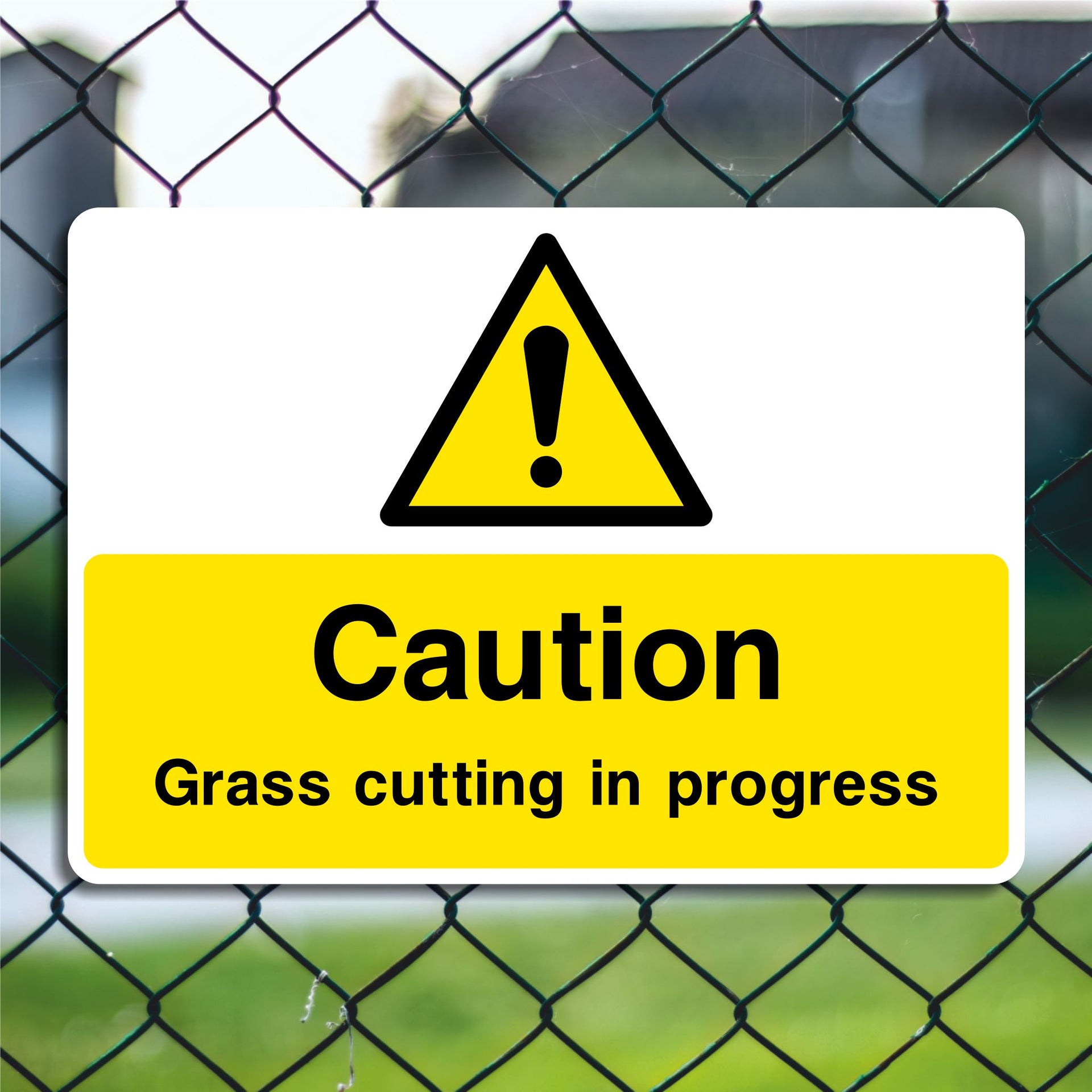 Caution Grass Cutting in Progress signs are used to warn people of potential hazards associated with grass cutting activities and to promote safety in the area whilst the grass is in progress. The sign alerts pedestrians, cyclists, and drivers that lawnmowers or other cutting equipment is in use and may pose a danger. All our safety signs are compliant with BS EN ISO 7010 where applicable.