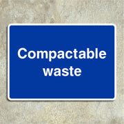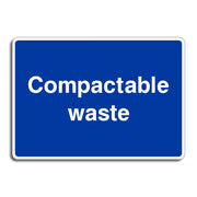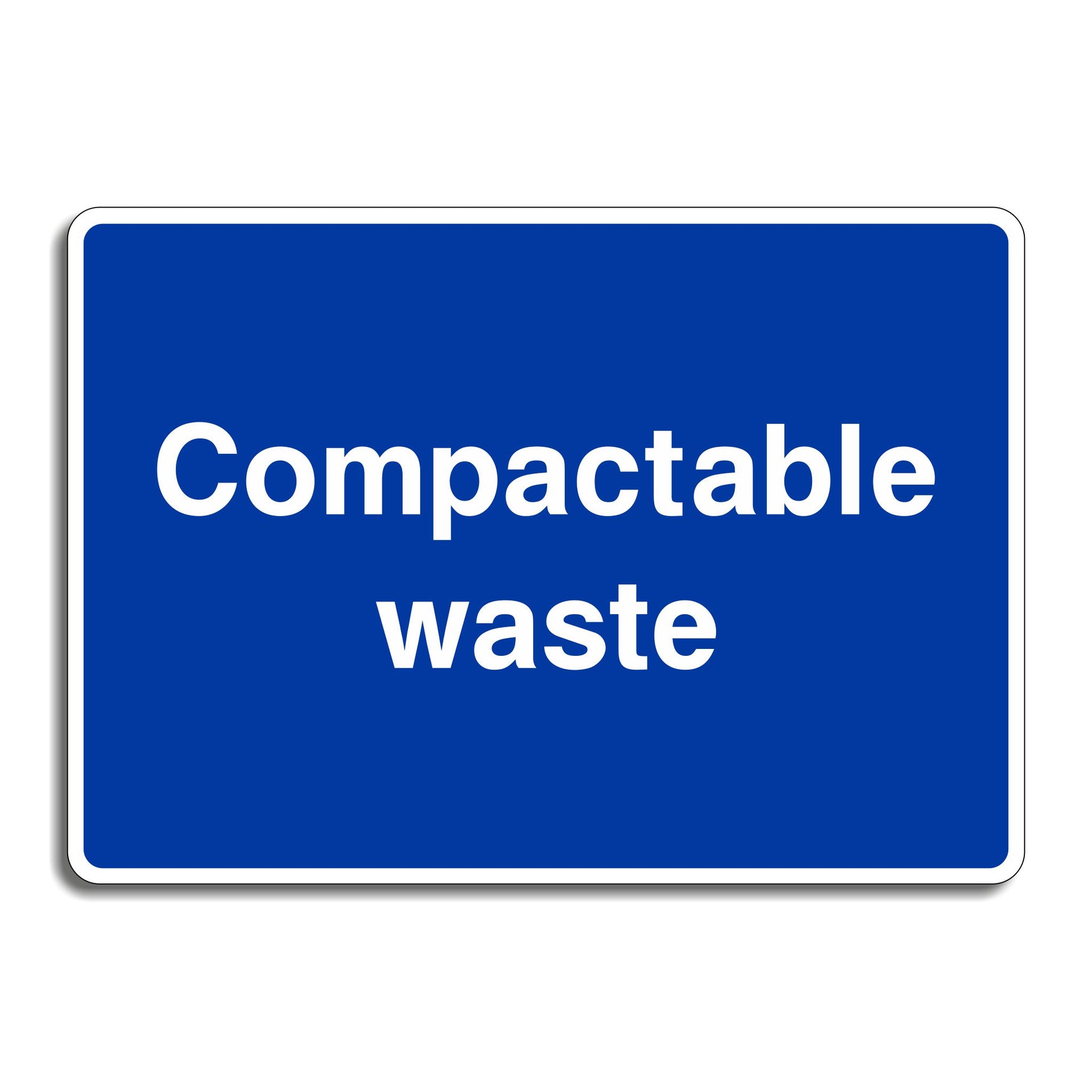 Compactable Waste signs are used to clearly mark a designated bin or area for disposing of waste materials that can be compressed or compacted safely. These signs are commonly found on construction sites, industrial facilities, or waste management areas. They Encourage Proper Waste Sorting and Helps workers and site users identify where to place light, compressible materials such as cardboard, plastic packaging, paper, and certain soft construction waste. All our safety signs are compliant with BS EN ISO 7010 where applicable.