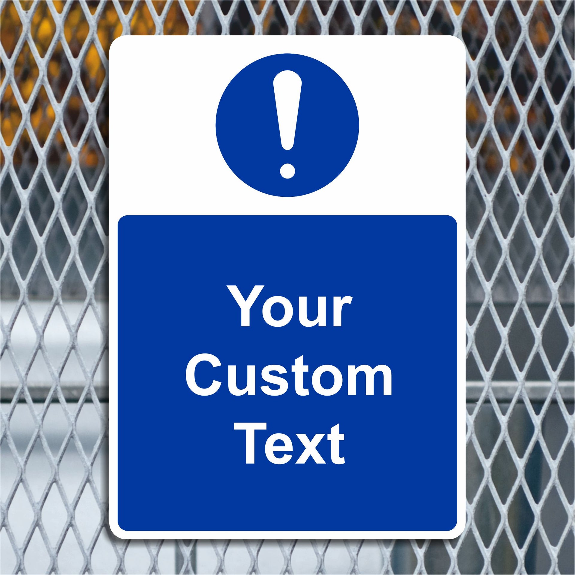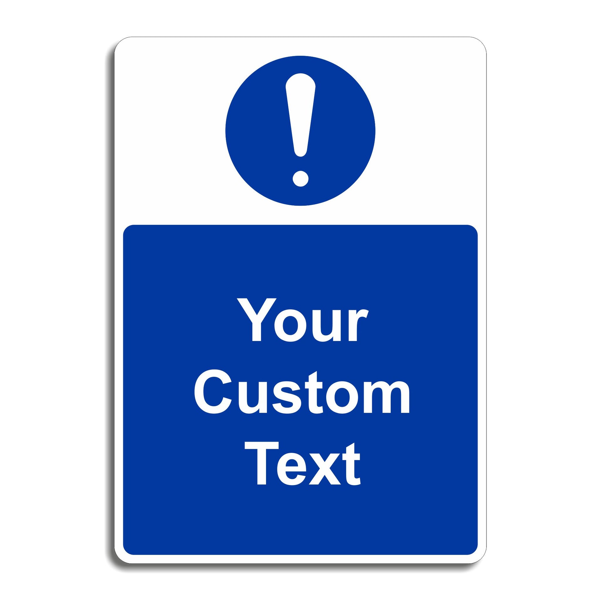 Do you need a new sign but can't find exactly what you want? We offer a range of custom safety signs available in PVC Vinyl, Rigid Plastic and Aluminium Composite perfect for workplace safety signage. Use our Custom Sign templates to create your perfect sign for just about any location or message! Choose your size, material and then tell us your text to create the perfect sign. Blue backgrounds with white text like this custom sign blank are ideal for any custom mandatory signs that you would like to create ready to display in any location.