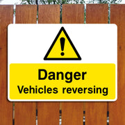 Danger Vehicles Reversing signs are to warn pedestrians and other drivers about the potential hazard of vehicles moving in reverse, especially in areas with limited visibility or heavy machinery. All our safety signs are compliant with BS EN ISO 7010 where applicable.