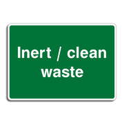 Inert / Clean Waste Signs are used to identify specific areas or containers for the disposal of inert or clean waste materials, helping to ensure proper waste segregation and environmentally responsible disposal. These signs are commonly used on construction sites, in landscaping, and at recycling or waste transfer facilities. They help to distinguish inert/clean waste—such as bricks, concrete, tiles, soil, and sand from other waste types like general, hazardous, or organic waste. All our safety signs are compliant with BS EN ISO 7010 where applicable.