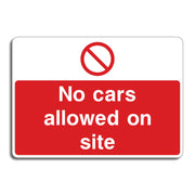 A No Cars Allowed on Site safety signs help to prevent unauthorized or unsafe vehicle access to a designated area, usually within a construction site or an industrial area. Many work sites have high foot traffic. Prohibiting cars from your construction site reduces the risk of accidents involving workers or visitors on foot. These signs help to ensure compliance with health and safety regulations and promote a safe working environment on your construction site.