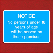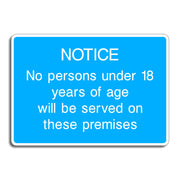 Notice No Persons Under 18 Years of Age Will Be Served Signs are typically displayed in establishments like bars, nightclubs, restaurants, or liquor stores where age restrictions apply to certain services. The sign helps the business comply with local, state, or national laws that prohibit the sale or consumption of alcohol (or other restricted products/services) to minors. It serves as a clear reminder to both customers and staff about legal age requirements. All our safety signs are compliant with BS EN ISO 7010 where applicable.