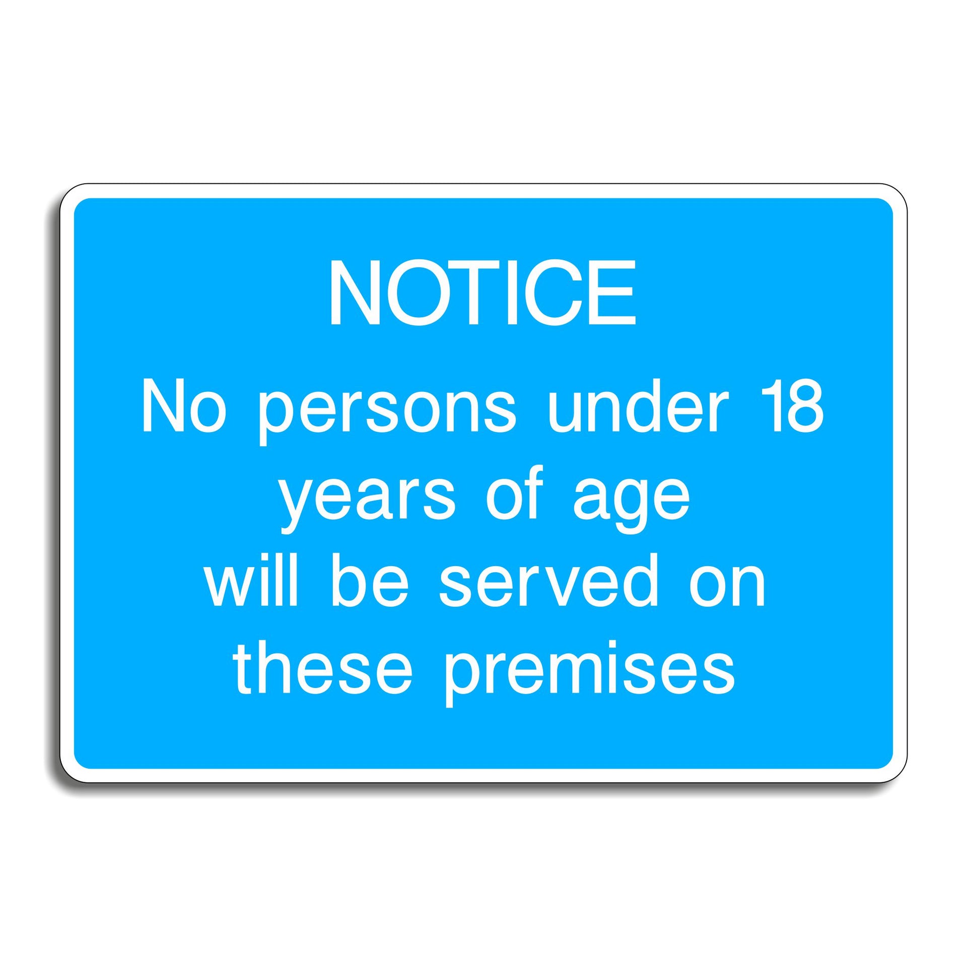 Notice No Persons Under 18 Years of Age Will Be Served Sign