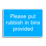 Please Put Rubbish in Bins Provided Signs are used in public spaces, parks, workplaces, or other areas to encourage people to dispose of their rubbish properly. These signs encourage individuals to keep the environment tidy by disposing of waste in the designated bins, helping to maintain a clean and pleasant area for everyone. All our safety signs are compliant with BS EN ISO 7010 where applicable.
