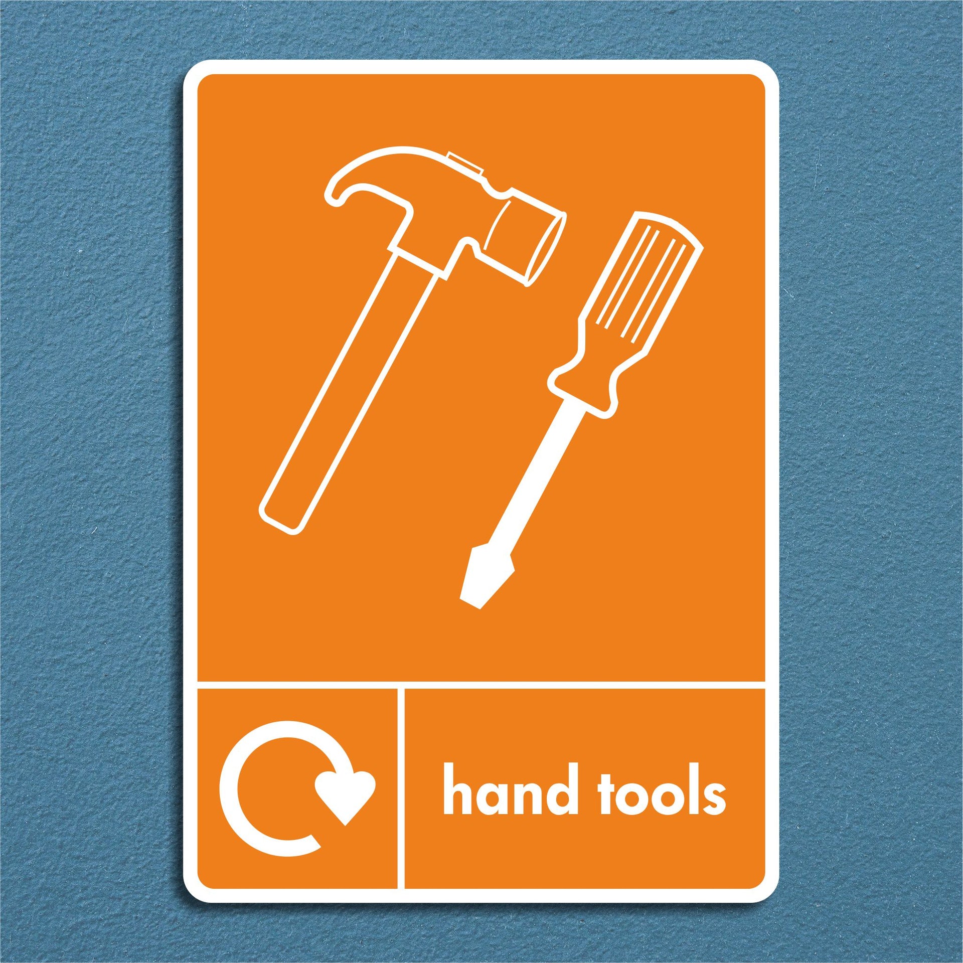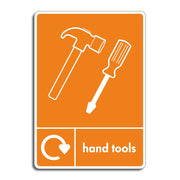 Hand Tools Recycling Signs are used to indicate designated collection points where old, broken, or unwanted hand tools, such as hammers, screwdrivers, wrenches, and pliers, can be responsibly recycled or donated. These signs help prevent usable or recyclable tools from being discarded in general waste, encouraging people to support reuse initiatives or material recovery. All our safety signs are compliant with BS EN ISO 7010 where applicable.