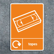 Cassette Tapes Recycling Signs are used to identify collection points for recycling various types of cassette tapes, such as music tapes, VHS tapes, camera film, video tapes etc. These signs help raise awareness about the recyclability challenges of tapes and encourage proper disposal methods to prevent contamination of other recyclable materials. Use this sign to support the Waste and Resources Action Programme (Wrap) All our safety signs are compliant with BS EN ISO 7010 where applicable.